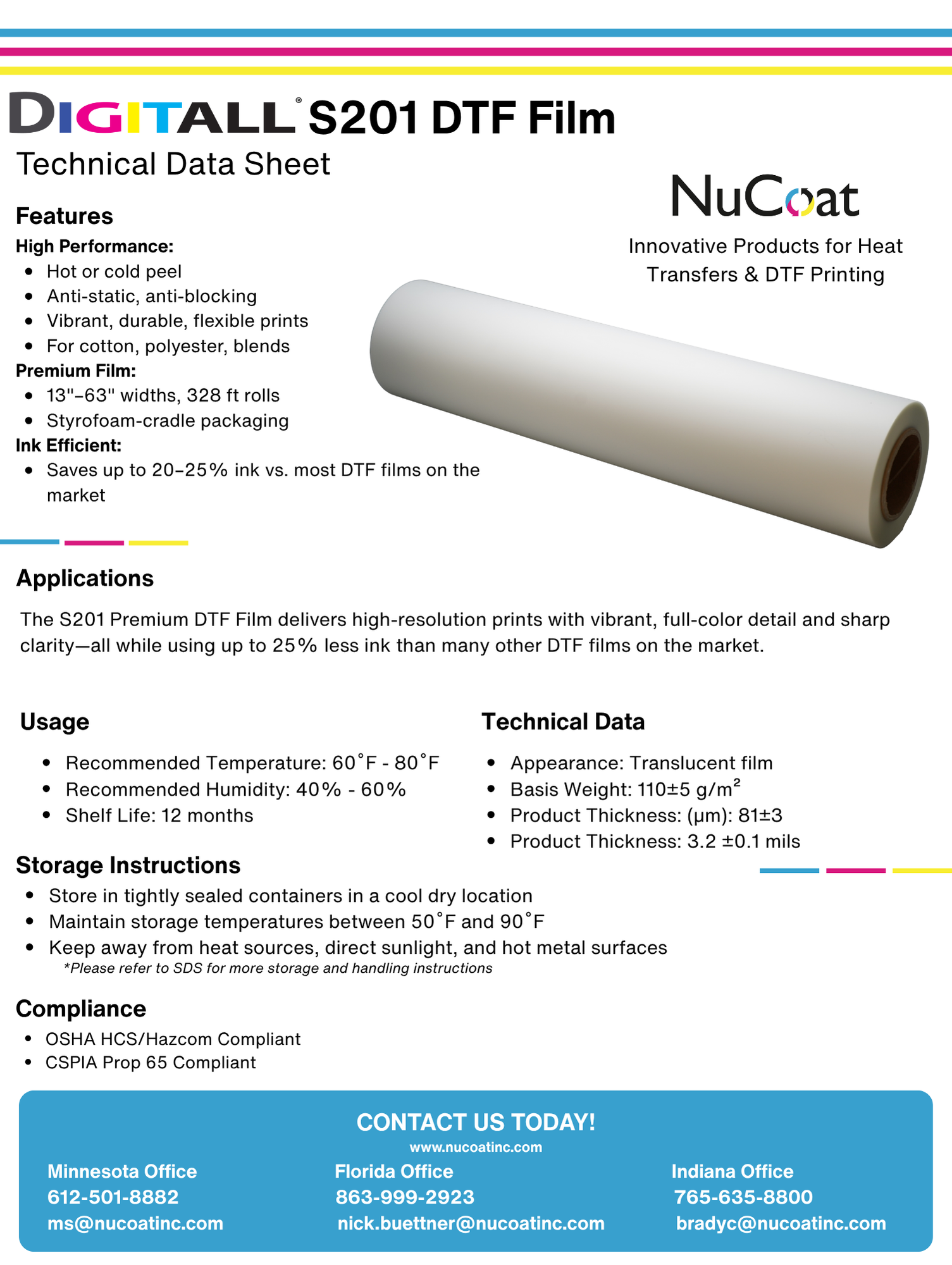 With DIGITALL S201, decorators and dealers gain professional-grade transfers, unmatched reliability, and full safety compliance—the film solution your business can trust at scale.